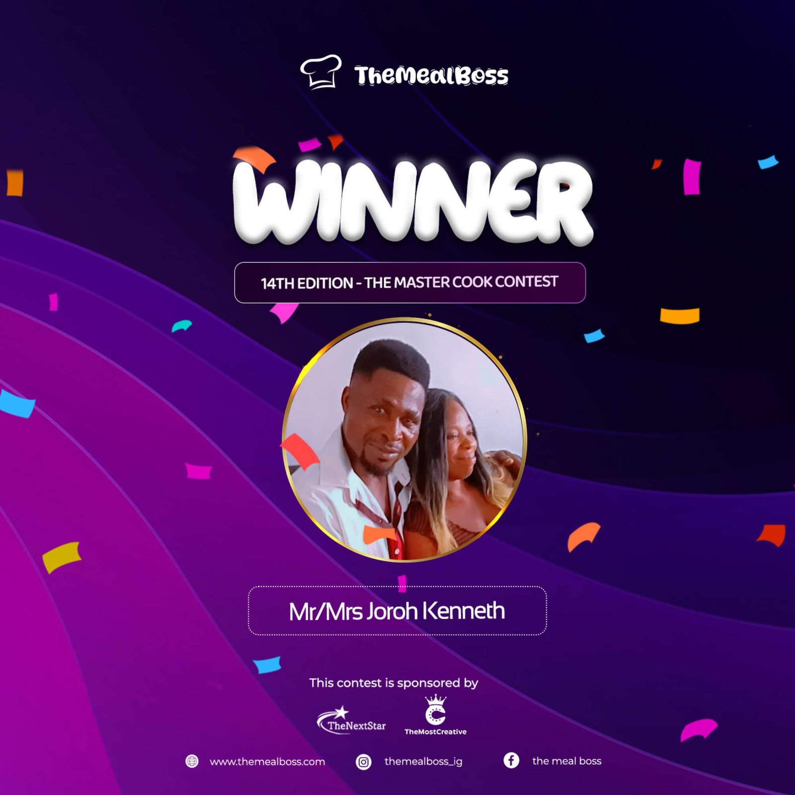 We say a big congratulations to Mr/Mrs Joroh Kenneth for emerging as the Winner of the 13th Edition - The Master Cook Contest [Completed] [Completed]