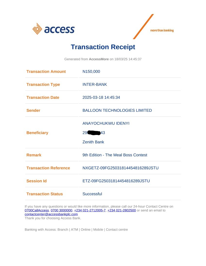 Here is a receipt of the transfer we made to Anayochukwu Peter