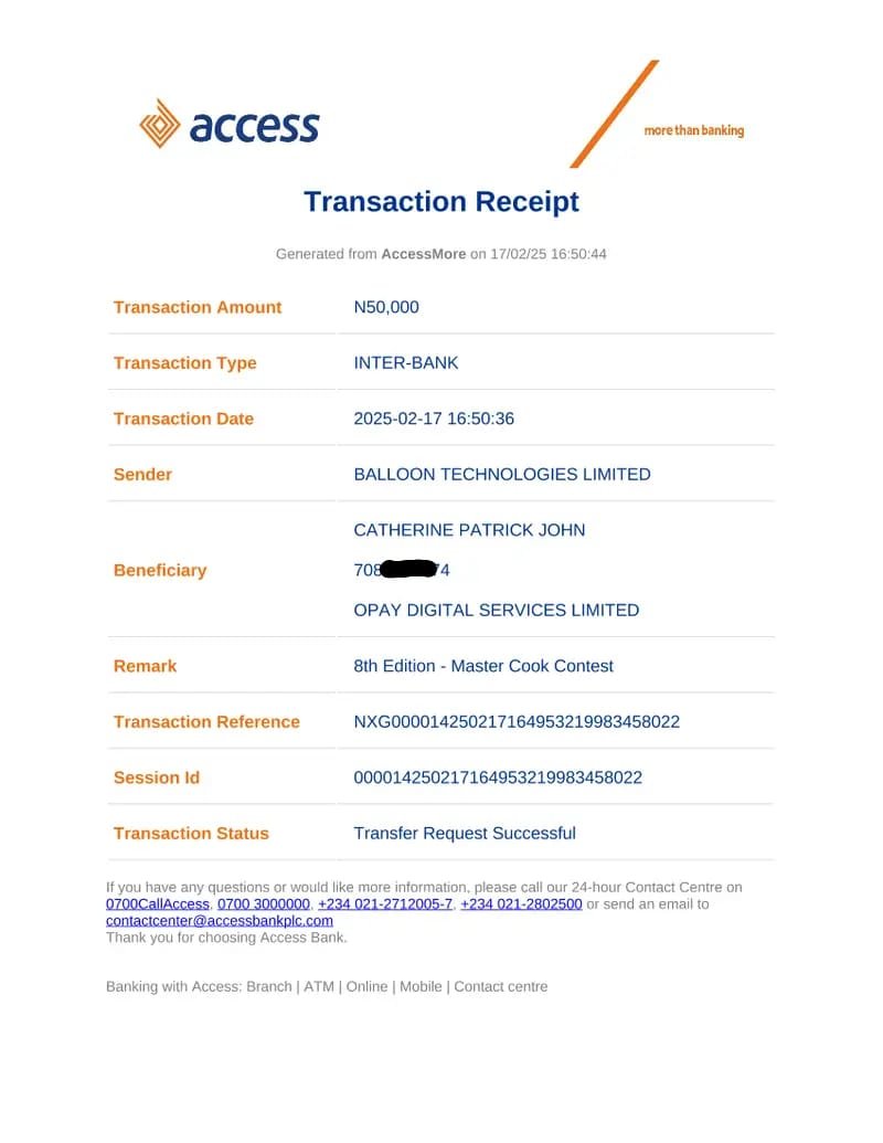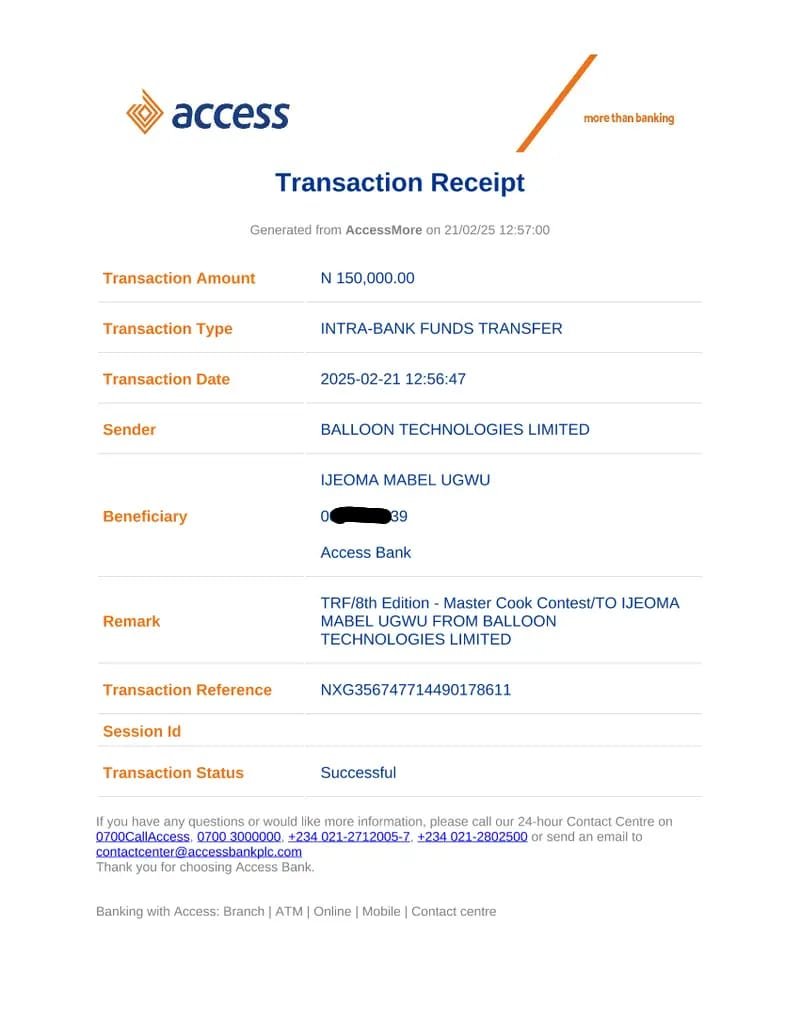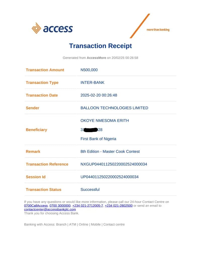 We say a big congratulations to Okoye Nmesoma Erith for emerging as the Winner of the 8th Edition - The Master Cook Contest [Completed]